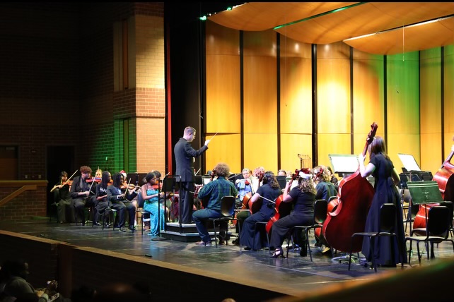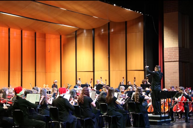The Symphonic Orchestra played a total of four pieces, accompanied by the Symphonic Band for three. Among the four pieces, many said that “The Grinch” was their personal favorite. With senior, and viola player Joe Perron echoing that sentiment.