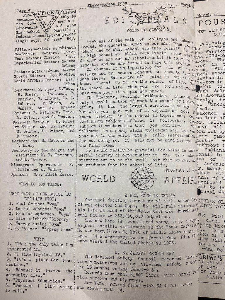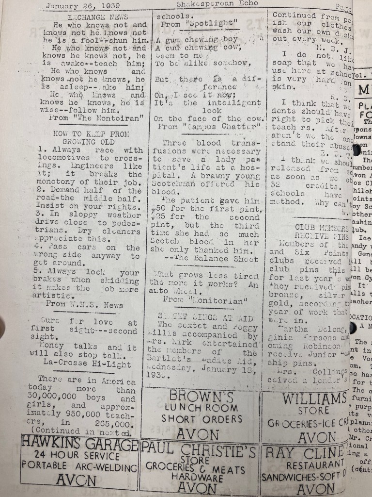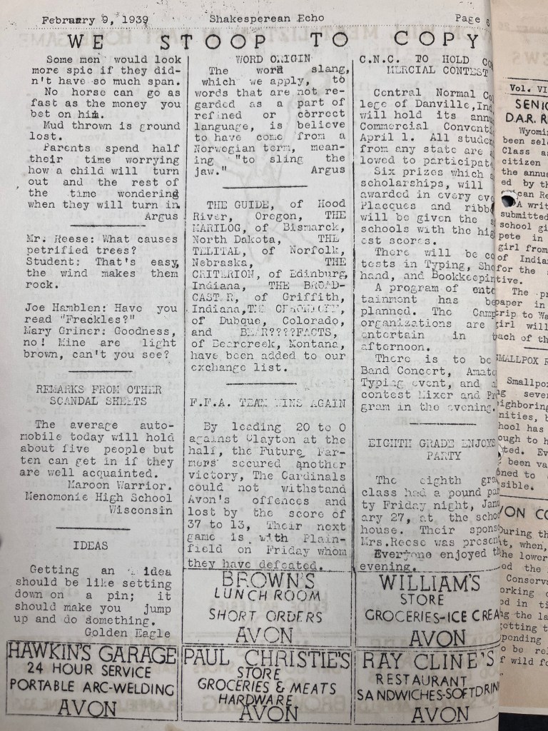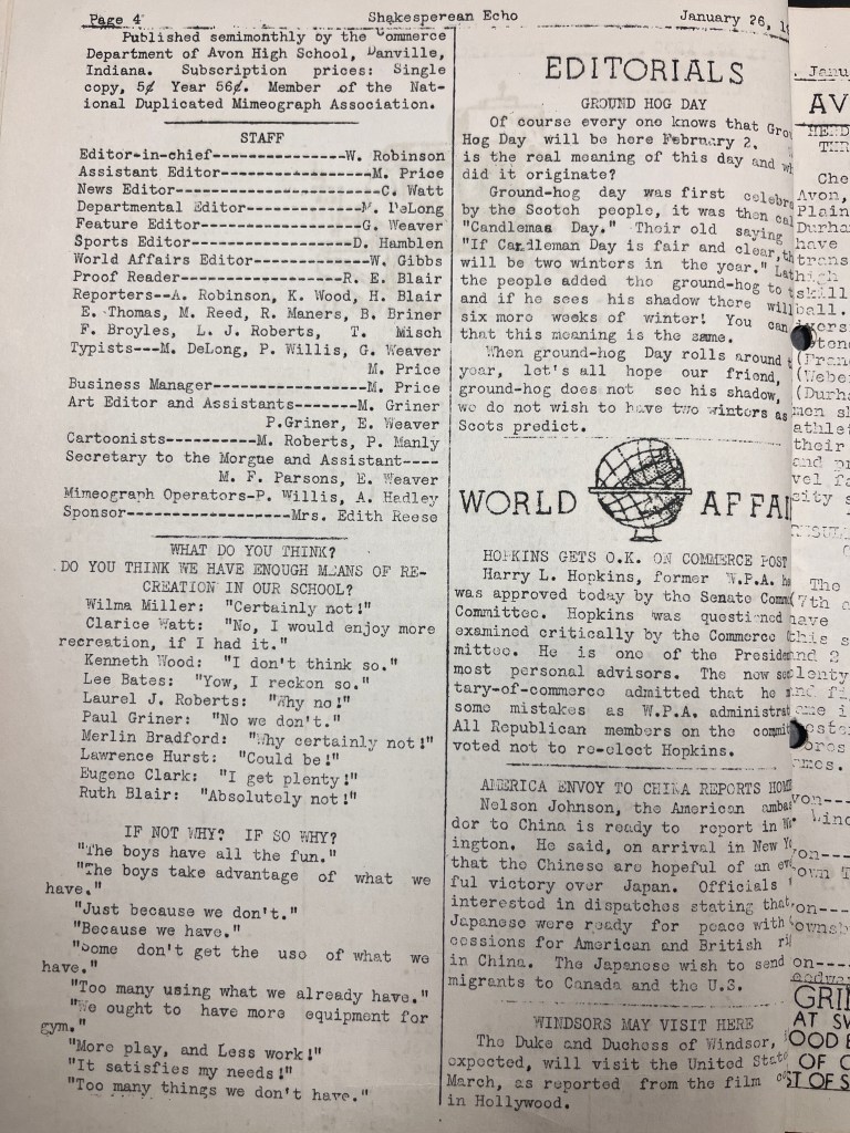 For example, both versions of The Echo have many stories dedicated to what goes on in sports in Avon. There are also stories relating to club activities, and despite the previously mentioned differences in reoccurring sections, both Echos have sections for editorials and opinion pieces.